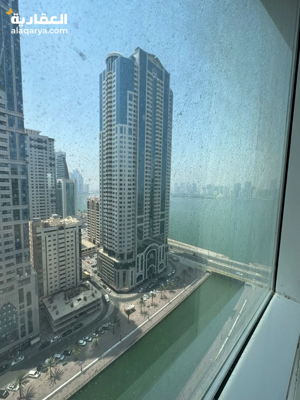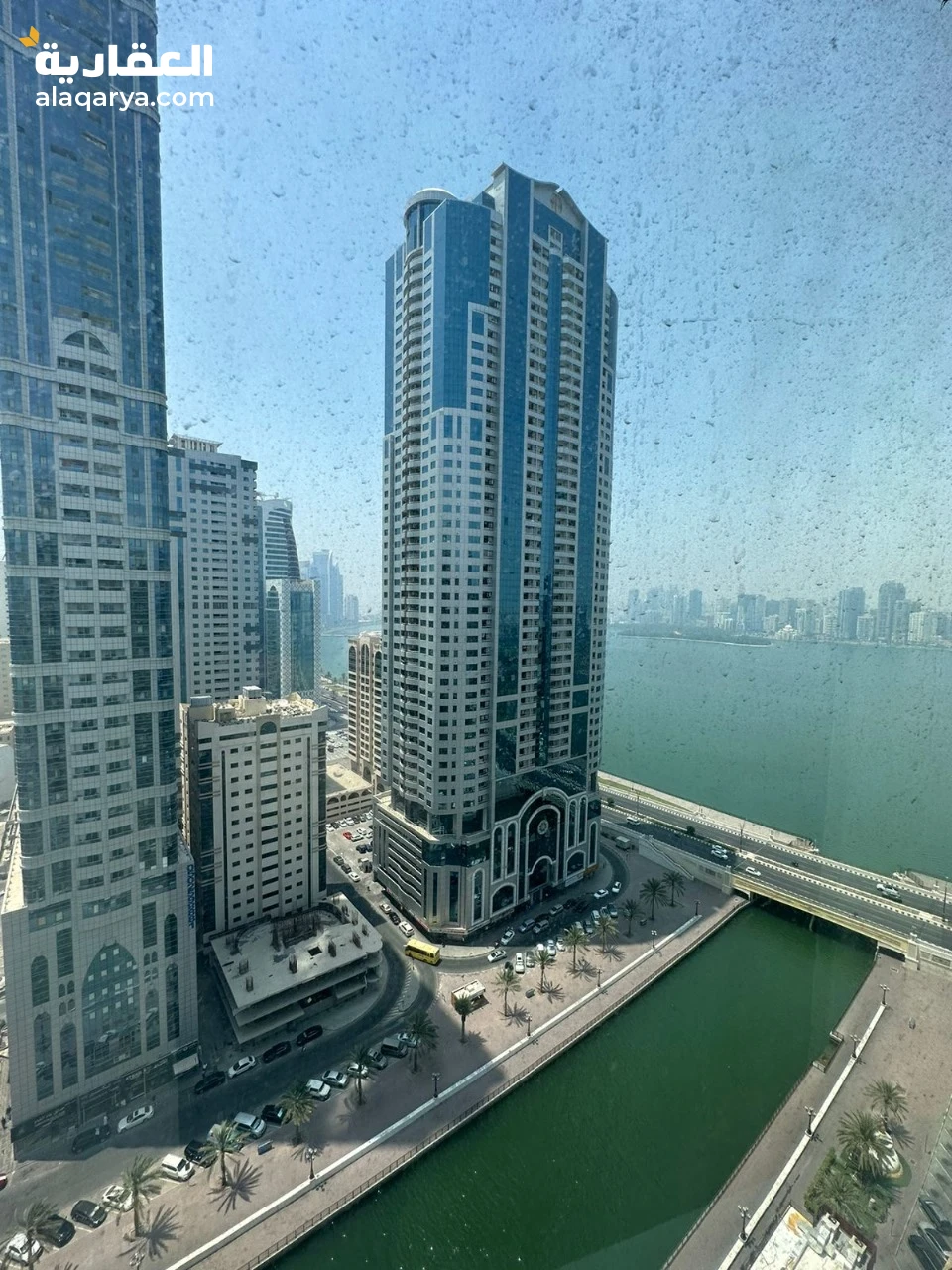 Apartment for sale in Sharjah Al Majaz 3 Al Qasba, three rooms, a hall + a balcony with parking, a distinguished location, a tower with integrated services, a gym, a swimming pool, a games hall, an area of 1387 square feet, the price is 680 thousand