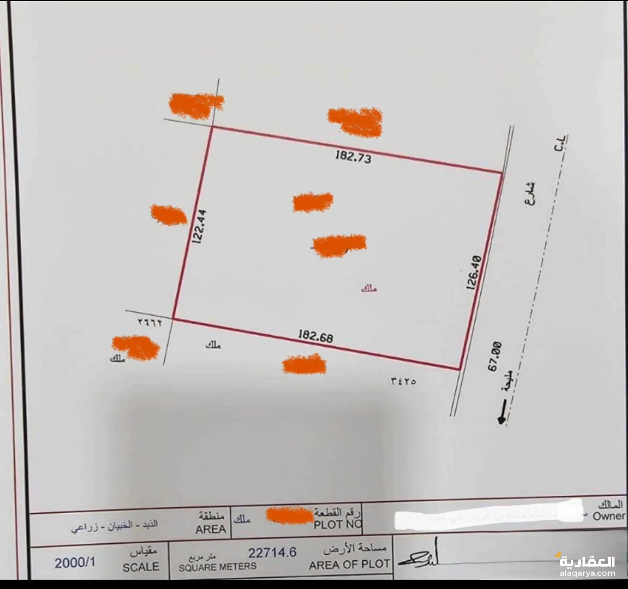 #للبيع ارض زراعيه الذيد الخبيان 245،000 اف قدم خاليه شارع عام موقع مميز