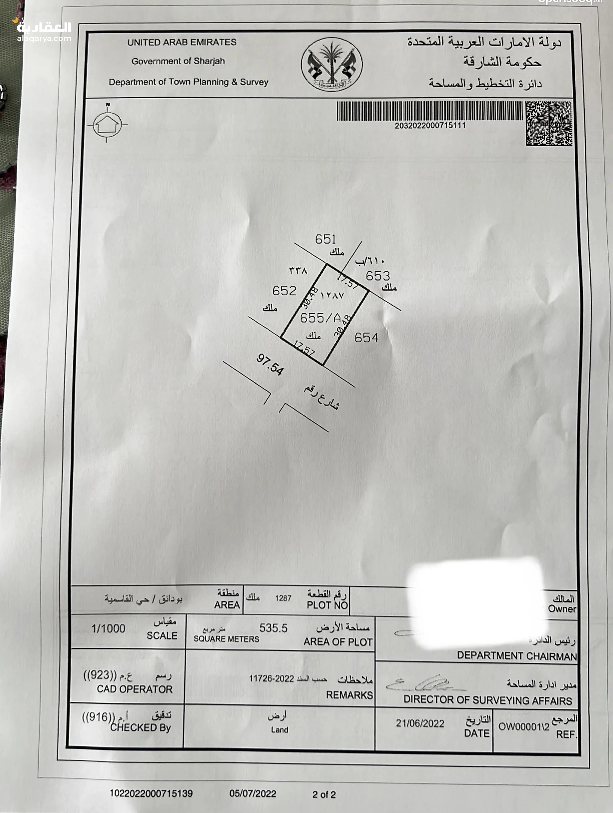 ارض تجاريه تصريح ارضي واربعه موقع متميز في بودانق حي القاسميه بالشارقة