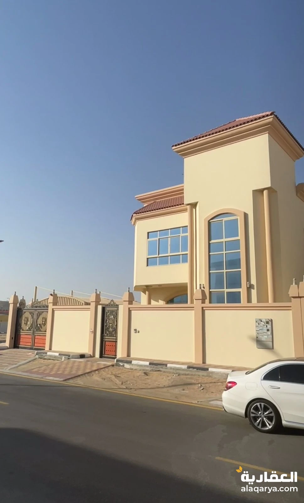 Villa for sale in Ajman Al Hamidiyah, two floors, corner, on two asphalt streets, behind Al Hamidiyah Health Center, Zain location, personal construction, decorations in all rooms and halls, central air conditioning, area 550 square meters
