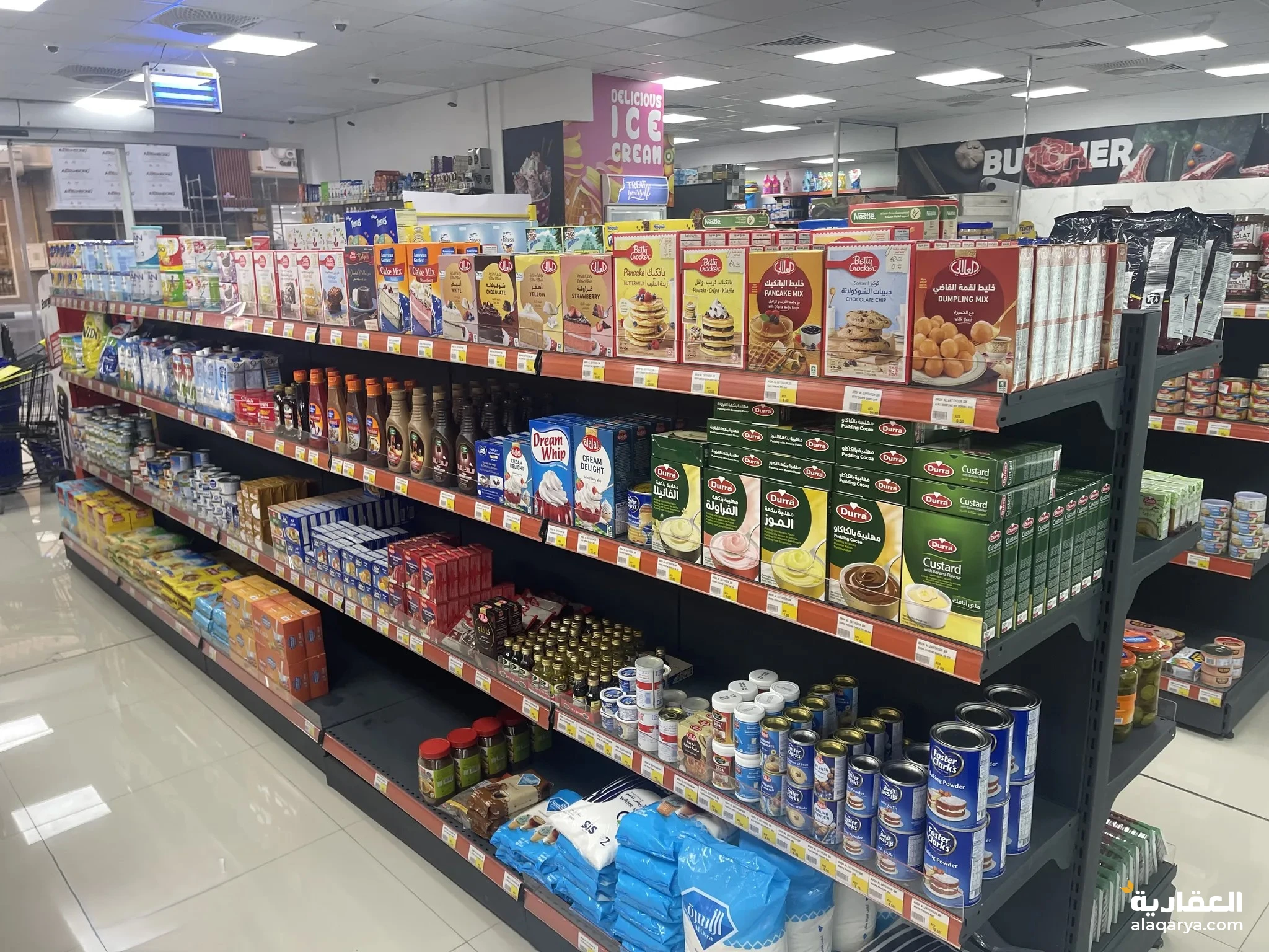 قسم العرض - [ ] ثلاجات عرض 3 متر. عدد 3 - [ ] فريزر عرض 3 متر. عدد 2 - [ ] فريزر عرض 2 متر قسم الخضار والفواكه - [ ] عدد 3 ثلاجة غير مستعمل - [ ] طاوله - [ ] ميزان إلكتروني - [ ] رفوف للعرض - [ ] طاولة مدرجه 2 ونص متر للعرض المكتب - [ ] مكتب عدد 3 - [ ] نظام محاسبة - [ ] تلفزيون مراقبه عدد 2 - [ ] كاميرا عدد 23 - [ ] خزانة ملفات - [ ] طابعة ملونه - [ ] طابعه ليبل قسم الكاشير - [ ] كاشير عدد 3. - [ ] 2 خارجي وواحد في المكتب - [ ] طاولات كاشير عدد 2 - [ ] رفوف بطول 3 متر عدد 2 رفوف - [ ]3 متر وجهين عدد 1 قسم زيوت - [ ] 3 متر وجهين عدد 1 قسم المنظفات - [ ] 5 متر وجهين عدد 4 - [ ] 3 متر وجه واحد امام الكاشير - [ ] 3 متر وجه واحد خلف الكاشير - [ ] 3 متر عدد 3 قسم المنظفات قسم الاجبان والزيتون - [ ] ثلاجة عرض عدد 3 - [ ] ماكينة بشر جبنه - [ ] ماكينة تقطيع مرتاديلا - [ ] ميزان - [ ] لوازم ديلي كاملة مكيفات 3 طن عدد 2 مكيف طن ونص عدد واحد بالمكتب دراجة للتوصيل عدد 2 مستودع خارجي سوف يتم ارسال فيديو للمستودع ( بعيد عن السوبرماركت 2 دقائق مشي ) مستودع داخلي مترين في متر باقي 14 اقامة حره